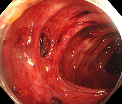 潰瘍性大腸炎、クローン病など炎症性腸疾患の治療では内科と外科の連携が重要です。当院では「IBDセンター」を設立し、当科と消化管内科との連携を密にして治療方針を決定しています。内科的治療が困難である場合や炎症性の病変が癌の発生母地となりそうな場合は、小腸・大腸の切除や大腸全摘等の手術治療が必要になります。また、クローン病の肛門病変に対して、外科的治療が必要になることがあります。当科では、大腸全摘や腸管の切除・再建手術をできるだけ腹腔鏡下に行うようにしています。クローン病に対する肛門病変に対しての治療も近年増加傾向です。(図2,図3)